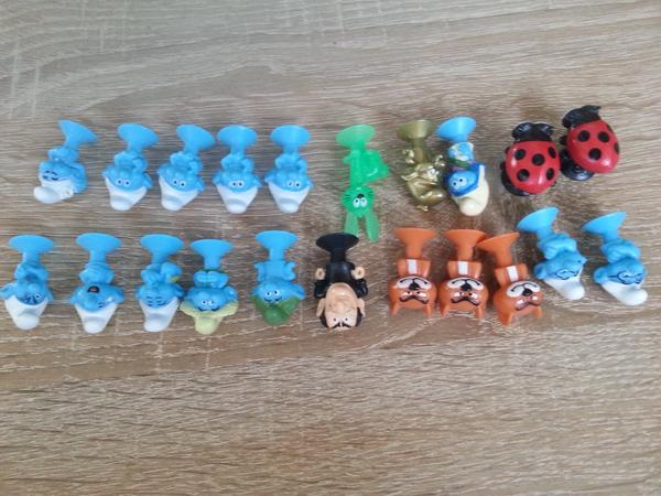Mám navíc gargamela 3x, lenocha 3x, breberku 2x, tatku šmoulu, šprýmaře, fešáka 3x, mrzouta 3x, siláka 3x, farmáře 2x, azraela a šmoulu. Chybí mi král šmoulů, dupík, fialový šmoula, malíř, koumák, muzikant a šmoulinka.