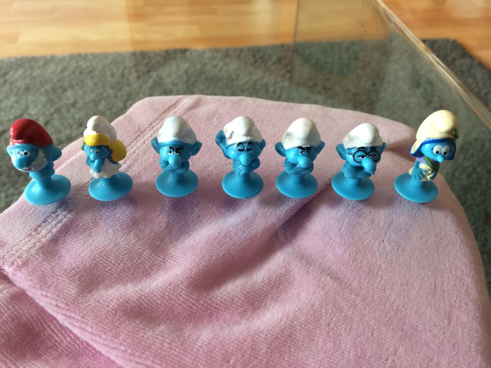 máme: Šmoulu, Taťku Šmoulu, Breberku, Šprýmaře, Kuchaře, Divocha, Mrzouta.
