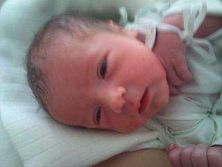 Takze Karolinka sa narodila v nedelu 5.9.o 9.50 cisarskym rezom.Vazila 3130gr a merala 50 cm. Vcera nas prepustili domov, ale kedze nas tatinko este nieco doraba, tak sme u babus na dedine.Pridavam fotku malickej po narodeni a moznosa mi podari aj nejaky albumcek z porodnice.