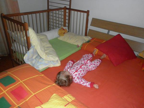 " V noci stojí v postýlce a řve na plné kolo klidně 2 hodiny...Já vím že v naší posteli usne,ale toho fakt učit nebudu !!! "
