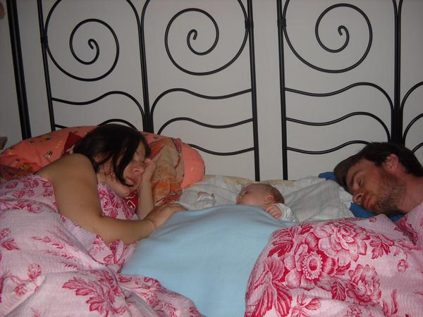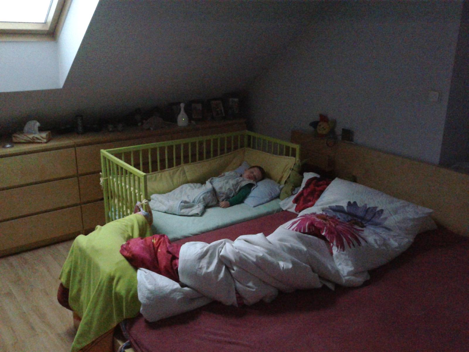 A spaní? Nějak takto, a tak půlku nocí v týdnu u nás. Třeba teď spí u mě v posteli, M je na noční a já budu spát na jeho půlce. Nad ránem se s Davčou šoupnem ke mě na matraci a bude 🙂
