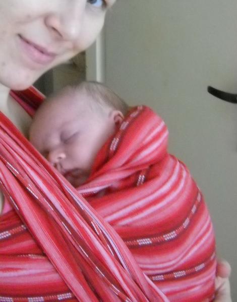 (teďka zas bojuju se šátkem pro malou, a to mám pružný. Verlikálně jí mám zatím obavy dávat, ale musím to zkusit. Do Erga mám novorozeneckou vložku, ale hrozně ji klimbá hlava)