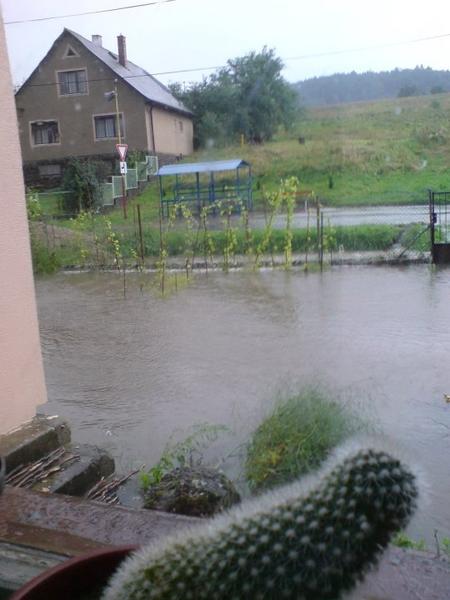 My jsme taky na kopci, takže maximálně naplněný rybníček a trávník pod vodou...