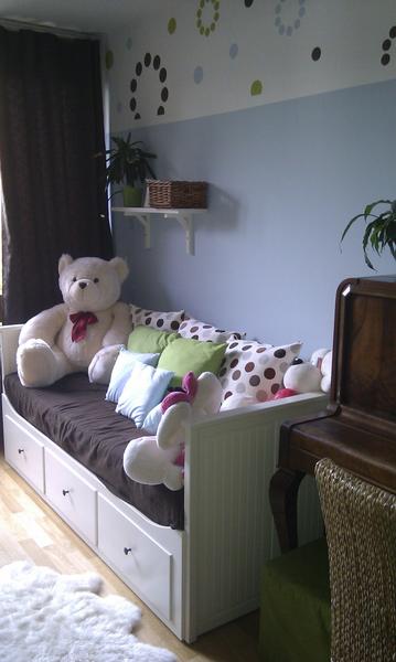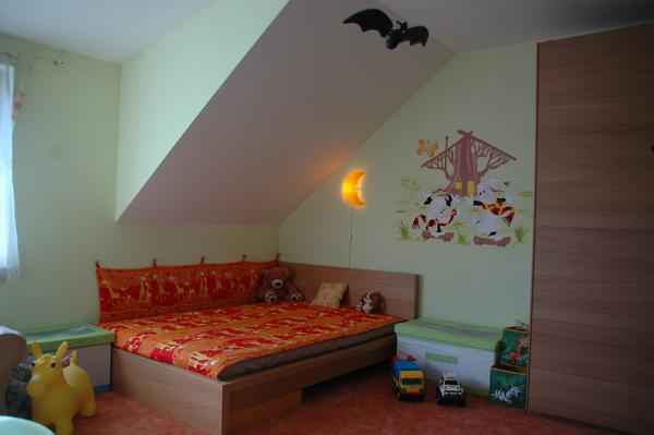 Ahoj holky tak Vám přidám náš prozatimní dětský pokoj. Je zatím jen na hraní, protože starší syn spí stále s náma v poslely a né a né jít do své. časem ještě koupíme nový nábytek a koberec. Hlavní je že se tam dětem líbí 😉