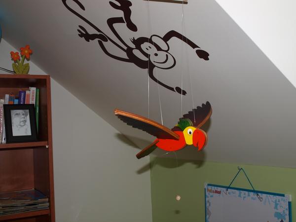 tak holky, už to pomalu začíná vypadat! nálepky nalepeny a hodně to dodalo ráz džungle 🙂 už budu fotit jen jsem zjistila, že nějak nevím, kam dát lampičku (na zeď) a taky kam závěsný kapsář z Ikea..