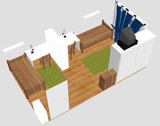 k předělení pokoje je použita police expedit ikea, zatím je víceméně prázdná a propouští světlo.Druhá fotka návrhu je původní stav, další dvě hodím co bych asi tak vymyslela. Do pokoje celý den svítí, takže jsou pořád zatažené závěsy, až někdy odpoledne kolem 15h (jak kdy), je roztahuju. Takže stoly před okny být nemůžou..