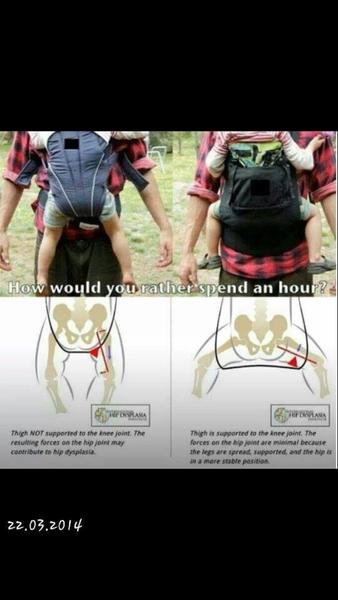 Neergonomické nosítko ti samozřejmě dítě nezabije během dvaceti minut. Škodí dlouhodobě a následky se projeví po mnoha letech, klidně až v dospělosti. Vzhledem k tomu, že jedna jediná návštěva fyzioterapeuta stojí jako třetina ergonomického nosítka, je to investice, která má smysl i pro třetí dítě. Zejména, když to slýcháš často - pak už budeš mít klid. Ještě dodám, že ergonomické nosítko je i výrazně pohodlnější. NOhy dítěte ti nevisí před tvoje dnohy a nepřekáží, máš je phodlně vedle těla, máš lepší kontakt s děťátkem, takže se navzájem parádně hřejete, a ještě máš těžiště blíže těla, takže je jednodušší s dítětem v nosítku třeba oblékat staršího sourozence. Co se týká oblečení, kombinézu se snaž do nosítka (nebo tvého visítka) nedáváat nikdy, je kluzká a manipulace s dítětem je pak nebezpečná. Lepší jsou jemné, měkké, netahavé materiály. Zimy se nebo, hřejete se navzájem. Případně máš krk dítěte na dosah, stačí si tam sáhnout, dokud je za krkem teplo, je teplo i dítěti.