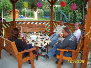 stůl už není v altánu plastový ale dřevěný šestihran jak má být
