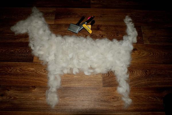 Foceno s odstupem 3 dnů, hlavní línání už jsme tehdy měli za sebou. Chlupy maďara jsou taky lahůdka. Na objem jich není tolik, ale "zapíchávátka" jsou zákeřnější. ČEZ z nás má radost, vysavače u nás fičí i dvakrát denně. Na tvrdé podlahy Philips Aquatrio, na koberce Vorwerk. Zoufalým pejskařkám doporučuji. 😅