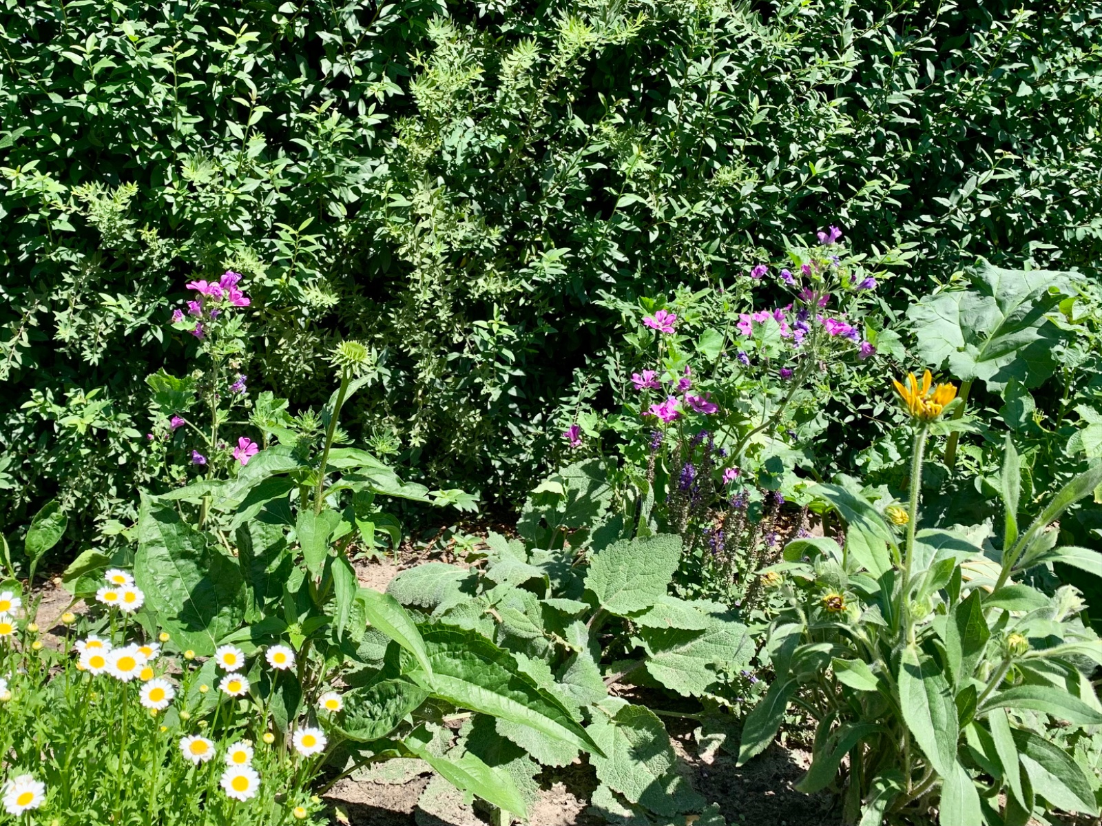 @eithelwing sléz maurský, květ. Na fotce to fialové vzadu, vyroste nad metr v průběhu sezony.