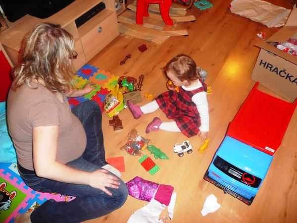 Jako první dostala vláček s čísly a pak Zoo - zvířátka se jí líbila 🙂 K Vánocům donesl Ježíšek velký domeček a to bylo radosti 😵