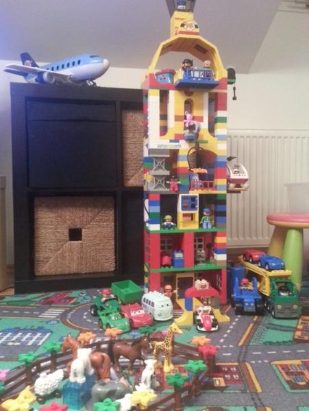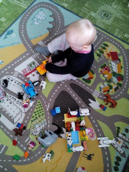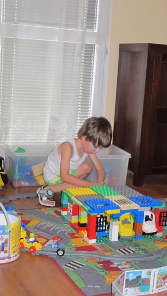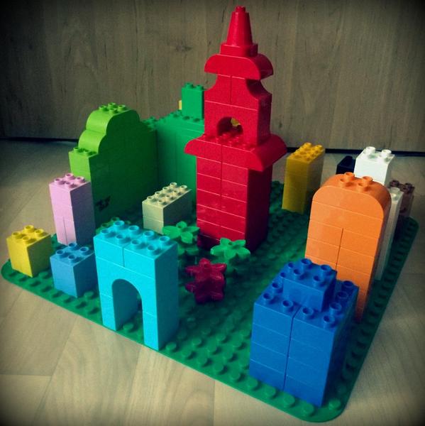 Toto je naše duplo městečko. Pokaždé to stavíme jinak, tak si s tím užijeme spoustu zábavy. Ze zbývajících kostiček si vždycky postavíme nějaký jeřáb, most nebo věž. Je to super hračka pro děti všeho věku a dost si s tím vyhraje i maminka a tatínek 😀 A jak říkám, duplo kostek není nikdy dost! Vždycky když stavíme, tak nám nikdy nezbyde ani kostička a spíš nám ještě pár kostek chybí, aby ty stavby byly větší a důmyslnější. 😉