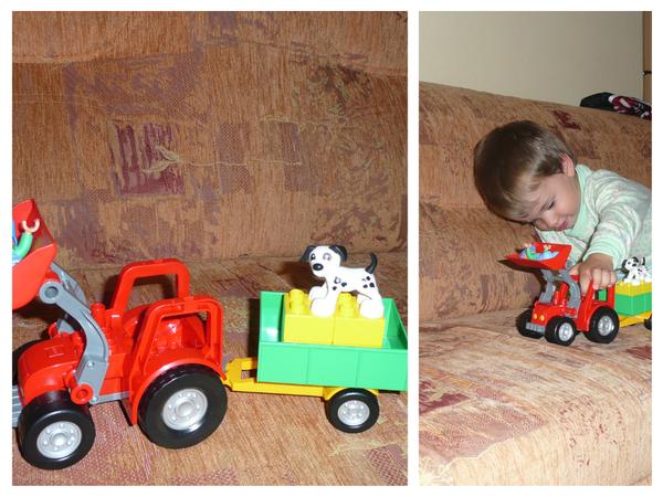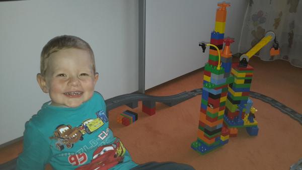 Náš Patriček okolo Lega Dupla zatím jen mlsně obchází v obchodě. Má ho slíbené kupovat, až přestane čůrat do plínek a začne do nočníku. Zatím mu to moc nejde, tak má jen vzorek Dupla co dostal na veletrhu PRODÍTĚ. tam se mimochodem Duplo moc líbilo i našemu mladšímu synovi. - viz foto (manžel mi tu přes rameno radí- fotka s nápisem víc nemáme 😀 )