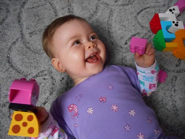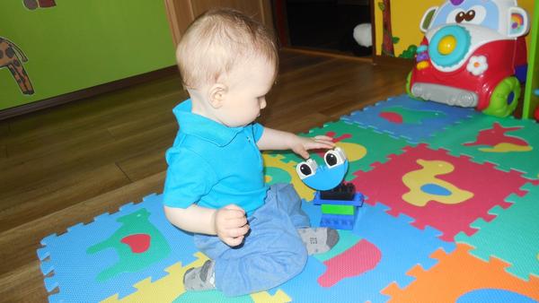 Moje žába, kterou nikomu nepůjčím.. I když u nás zatím staví taťka, Pavlík (7 měs.) je zdatný "demontér"..Kostky si zamiloval a já jsem ráda, že si procvičuje motoriku a dokáže se na chvilku zabavit. Další lego určitě bude čekat jako překvapení k 1.narozeninám nebo pod stromečkem.(jen nevím, zda to bude větší dárek pro malého nebo pro tátu) 😉