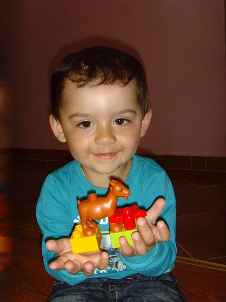 Dobrý den. 😉 S dvouletým synem Michálkem si hraju často.Ovšem vždy když přijdu do pokojíčku se slovy : ´´S čím si chceš hrát?´´ hned začne vytahovat bedýnku s Legem. 🙂 Máme bohužel zatím jen dvě sady,ale vyhrajeme si celá rodina.Když začnu stavět sama tak se Michálek začne rozčilovat a křičí ´´Ne!Jáá!´´.Takže tento výtvor jsme postavili spolu,hrajeme si na ZOO a na obchod,kde zvířátka nakupují ,,Papu´´ 😀 (Abych ještě dodala,díky obchůdku z lega se syn naučil říkat ahoj a dík) 😎