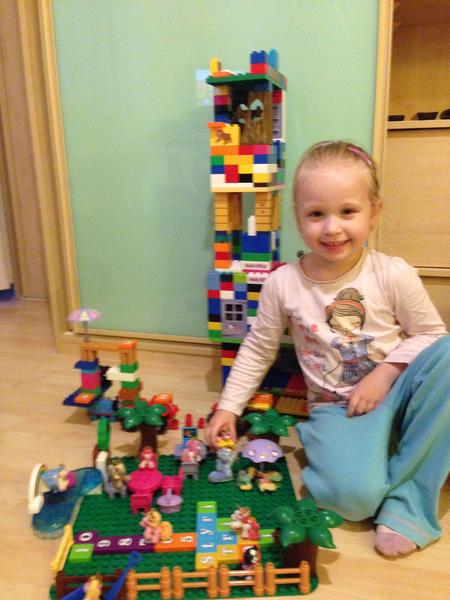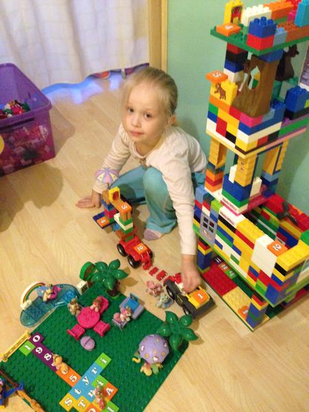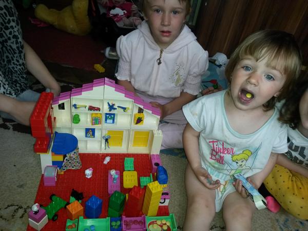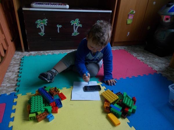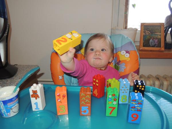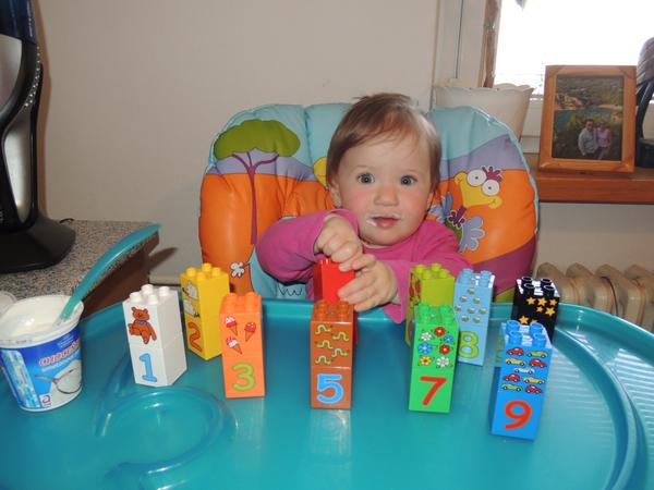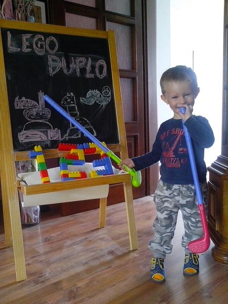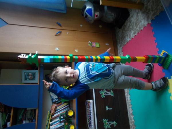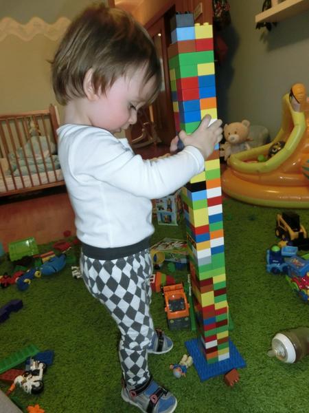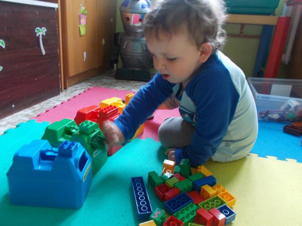 Náš mladší synek Bártík (2 roky) si rád staví s Duplem. "Žifafa jako já veliká". Barvy se učí a s počty pořadí starší brácha Vincík (4 roky). ;)