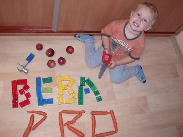 Davídek by se vyzbrojil proti bacilů svou oblíbenou mrkvičkou a jablíčky, které by si nařezal svou pilečkou, kterou nepustí z ručičky. Proti bacilům bojujeme správnou výživou, dostatkem tekutin a pohybu. 🙂)