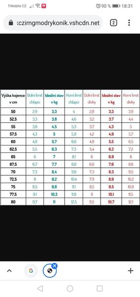 Ber to i podle obou (mesice i delku/vysku mimca) na netu toho mas spousty o vaze 🙂