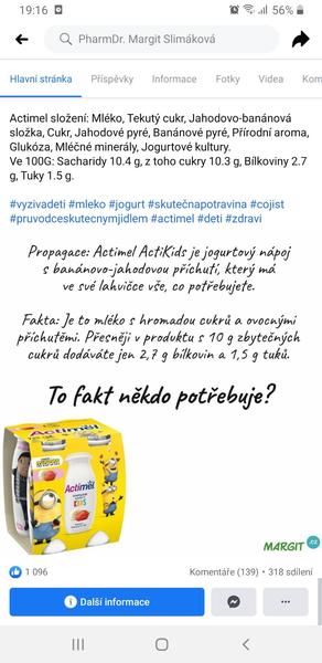 Mladší dcera ho pije, ale na nějaké účinky nevěřím. Kupuju ho proto, že ho má ráda a dá si ho jako malou svačinu, rohlík by si nedala, ale actimel vypije.