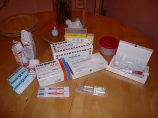 každopádně musím říct, že už se tam těším, protože mě vajucha tlačí teda fest a je to moje nejdelší stimulace, punkce bude 16.den cyklu!! Ale když to vezmu zase kolem a kolem, tohle stimulačnís chéma se nejvíce blíží mému přirozenému cyklu, kdy ovulace stejně bývala 15.-18.den, tak to je akorát. prostě jsme chtěli změnit všechno a zatím se to daří, tka doufám, že bude i nadále. Břicho už mám pěkně dopíchané a modřiny jak na podzim 😀 Přidávám vám fotku mé "domací lékárny narkomana", aby se vám to aspoň trošku připomnělo. 😀 😀 😀
