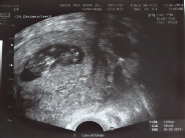 holky tohle je druh zvaný Mimino Obecné 😀 dnešek dopadl dobře......jsme 10+4, takže 11 tt. a screening bude za tři týdny 😉 nemám komu ukázat fotečku, všichni jsou v práci, tak aspoň Vám 🙂 vlevo to velký kulatý je hlava 😀 😀
