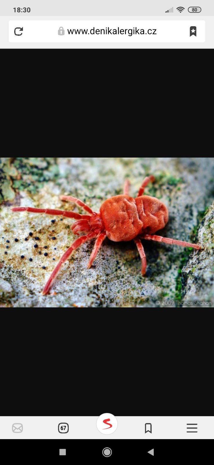 @jirinakuk jasne to foto je z mikroskopu, ja sama lezouci sametku po sobe ani nezahlidnu, podle me je snad i mensi nez 1mm... jen az v tom pupinku ji najdu, je videt hodne nepatrna cervena tecka uprostred. neni zac, pro me to byla take novinka pred par lety, nikdy driv jsem se s ni nesetkala... A jeste posledni vec, pokud mate psy, tak sametky jdou do meziprsti u nich, je potreba to vykoupat spec. samponem🙂