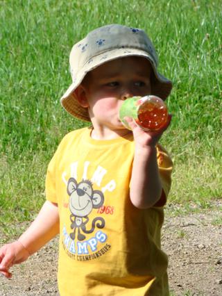 hlavne kdyz pije.... zase je ale schopnej nacpat se ovocem... melouna, dneska hrozno.. takze me to az tak netrapi 🙂