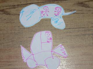 krásné ráno piřdávám fotečku Michálkových výtvorů.. malby, ale postavy jsme kreslila já a stříhala nakonec taky... 🙂