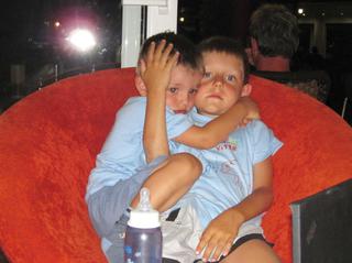 jinak dovolená jako vždy 😉 první tři dny jeli kluci na 150% než trochu zvolnili. moje malilinkatá představa, že si budou hrát v písku a my si lehce budeme polehávat u moře vzala rychle za své 😉 takže jsme zase lítali jak hadr na holi a Mirek prohlásil, že to není dovolená, ale trestný tábor 😀 nu, s klukama už to jinak nebude, moře bylo spíše pro ně než pro nás. jinak hotel moc hezký, klidný, moře moc krásný. lehce s kamínky a malinké vlny, mělká voda. supr pro děti. a odpoledne teplunké.. dám nějaké foto.