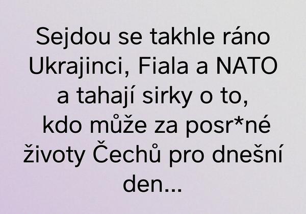 Neřeším momentálně nějaké zdražování apod. Je mi jasné, že nějaký dopady to mít musí, dokonce naopak nechápu lidi proč si tak strašně stěžují, že nemají peníze apod. A pak se na charitach dokáže vybrat prws miliardu korun... Tak nechápu jak si jako národ muzem stěžovat na to, že jsme chudý (to je asi ta moje zlost), rozhodně to těm ukrajincum nezávidím, že jim ty peníze lidi poslali, spíš mi asi vadí ta závist a zlost nás Čechů... Tady si hrajeme hrozně na zachránce a pak si na to všechno stezujeme... Bude to přesně jako s covidem, budem dělat, jak se jako národ dokážeme swmknout a pak si tady mezi sebou div nerozbijem úsměvy . No byl to jem takový výkřik dp tmy, nějak se ve mě prostě hromadí všelijak emoce a nevím si asi s nimi rady...