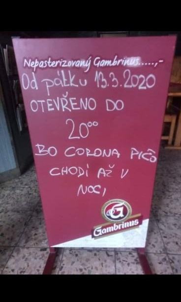 Tak dnes zase čtu novinky. Hospody budou otevŕeny jen do 23.00 hod. Nejsem sice žádnej kalič,léta jsem nebyla v hospodě dýl jak do večerníčka,ale nechápu,jaký vliv to má na coronavirus. Jestli po jedenácté virus víc běsní nebo co?😀😀😀😀