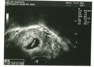 Ahoj holky, tak som dnes bola na kontrole a utz. Vsetko je v poriadku, nasa fazolka ma 9,7 mm a bolo vidiet srdiecko. Krasne tam skakalo. Krasny pohlad to bol. Prikladam fotecku.