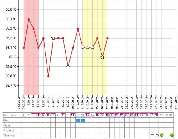 baby prosim poradte...v piatok bol folik 21mm a pichol mi pregnyl, v sobotu bola teplotka 36,6 a nedelu 36,8....v sobotu vecer i nedelu som mala ovu bolesti, od soboty krcok vysoko, ale dnes mam zas teplotu 36,5 a krcok stale vysoko a to mam dnes 16DC a mam si dat uz dufik.... co mam spravit? do kolko byva ovulka po pregnyle, mam si dat ten dufik ci nie?????som z toho blazon, poradte a este v sobotu som robila ovu test a pozitivny hned.... zeby som bola dnes 2DPO? a teplota tak klesne? ja neviem vazne, nechcem nic pokazit tym dufikom, ale ak uz ovulka bola, tak by bolo dobre si ho dat, nie? a graf