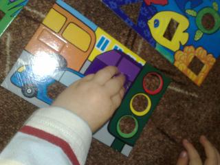 kámoška nám půjčila puzzle, tak jsme to zkoušeli, docela mu to už jde 🙂 pak jsme zase dělali puzzle souvislosti, ty už teda umí raz dva, takže si zas půjčíme nějaký jiný 😉 pak klasika vkládací puzzle pro mimina, to si vybral sám 😅 😅 😅