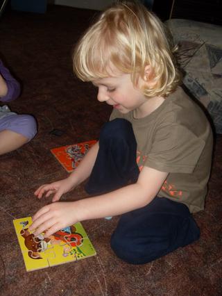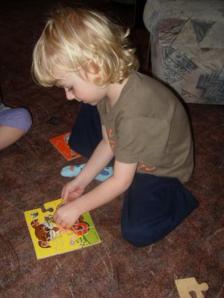 no, tak to je šikulka. Jak říkám, sama se s tím kolikrát trápím, když je to na hromadě a musím to rozdělit na několik obrázků. Alexek to ale vlastně taky dělal - vysypal asi 5 puzzle (15 dílů/puzzle) a pak to dával dohromady. Nejhorší byli krtečci - to měl 3x (z toho 2x stejné jen jinak nařezané).