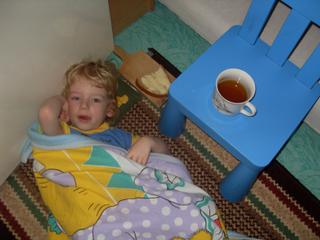 A poslední fotka... Kouzelné... My máme zase domečkové období. Škoda, že jsem to včera nevyfotila. Alexek si postaví dětský stůl na dvě nohy, udělá stříšku, nanosí všechno možné a takhle mi včera vedle postele usnul (jako v boudičce). Ve 22h jsem ho přenesla a samozejmě se kolem 2h vzbudil a dožadoval se spaní v domečku, který jsem už ale uklidila (neuměla jsem ani vylézt z postele). Jo, a spal v nových rukavičkách. Truhlík malý.
