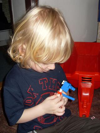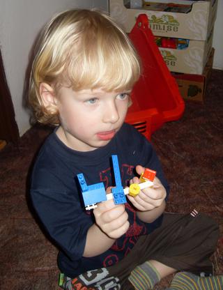 No a teď máme už dost dlouho kramářské období. Přestávám to dávat. Domečkování, židle přes celou předsíň jako mašinka, různé mosty na hlavním tahu z kuchyně do obýváku, židle rozestavěné na minigolf. Pokoje máme docela malé a už mě neuvěřitelně rozčiluje, jak musím pořád všechno překračovat, nic se nesmí uklízet, atd. Kdyby si to dělal ve svém pokoji, tak to neva, ale ten není zrovna jeho nejoblíbenější. Nejlepší je dělat binec v předsíni a obýváku.