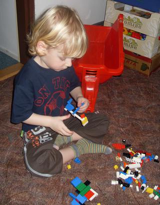 Alexek je tak napůl, ale hrát sám si určitě umí. Navíc to je dítě, které v raném dětství u té bedny fakt vydrželo (třeba hodinu). Teď se to snažím skoro úplně odbourávat, tak to je samozřejmě náročnější. Teď si navíc vyžaduje tu pozornost více než dříve, ale s ohledem na jeho aktuální úroveň to není tak strašné.