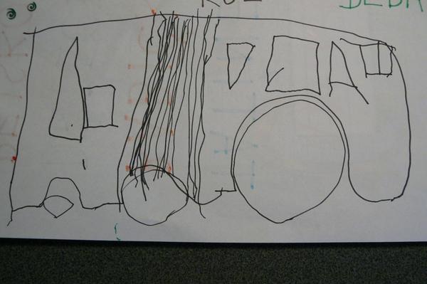 @anetkaberuska - hezký 🙂 , taky mám doma spoustu obrázků kloubových autobusů 😀 , vypadaly dost podobně, ale koukám, že Štefánek tam namaloval i ty vykrojení na kola, to Jiřík doteď namaluje dole rovnou čáru a pod ní různý počet kol, podle toho, jestli chce kreslit autobus, mašinku a nebo vagonek 😉 , ale kloub a okýnka tam má taky 🙂