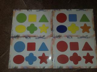máme tuhle hru, musí se tam tvary dávat podle předlohy...jsou oboustranné, takže ta barva se musí hledat..no Tygr to tam dává podle tvarů, ale jaksi ta barva je mu někde...zatím to děláme asi 3 dny..a teda jako mu to furt moc nejde 😒