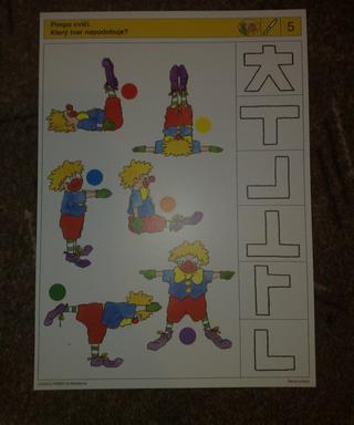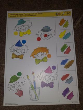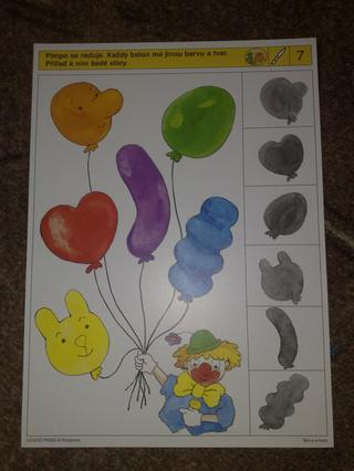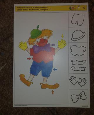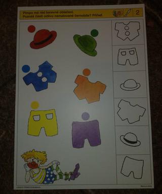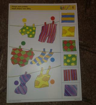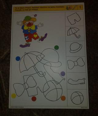 Presli sme uz z Kati asi stvrtinku knizky Obrazky do skolky, su tam ulohy od 3 do 6 rokov, tak zvlada len tie najlahsie na zaciatku, rozlisovanie farieb, hladanie stratenych predmetov v obrazku, priradovanie tiena k obrazku, doplnanie chybajucich veci v rade, alebo hladat co tam nepatri, potom este jednoduche protiklady atd. Uspech je hlavne to, ze uz je ochotna sa tomu venovat a odpovedat.