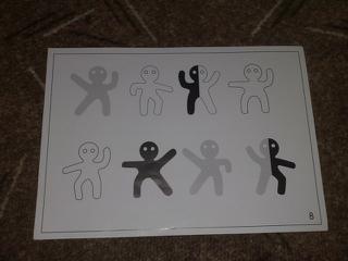 Siluety - to mi přijde fajn, musí se přikládat půlky panáčků podle velikosti a směru, bud barevně nebo pak černo-bíle, dobrá věc 😉
