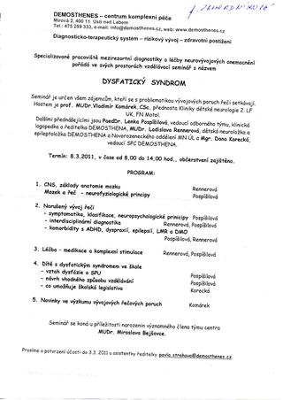 tak jsem dostala pozvánku na seminář o dysfatickym syndromu. Tak jsem dost zvědavá co se tam dozvim. Je to od demosthenu kam s Martinem dochazíme na terapie