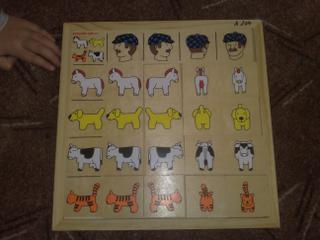 Ale třeba ty puzzle s protiklady už dá sám úplně celé, když mu je vysypu na stůl, tak je chce dělat dvakrát denně, jak to umí tak ho to baví. Zajíce v pytli taky dá celého i stínového. Ale pořád se mu nechce ukazovat v knížce, ukáže tak na polovinu toho co chci, ale pokrok je, že pak ukazuje sám a já obrázky pojmenovávám.