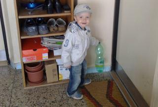 Simčo, on když je v tom svým afektu, tak mu můžu říkat, co chci....on jen sedí na zemi, zakrejvá si oči a řve 😝 jinak sebeobsluha už jakž takž, sám pije z hrnku s brčkem, snaží se jíst vidličkou a lžící, jakž tak se svlíkne a něco si oblíkne...no ale žádnej zázrak... 😝