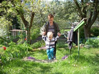 tak u nás pokrok, Tygr venku chodil za ruku...sice tahal on mě, a ne já jeho.....ale stejně úspěch, doted se nikdy za ruku nechytil 😕 jo, a dokonce před barákem chtěl ven z kočáru a ten kousek doběhl a za ruce dal i ty schody 😀