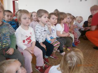 @dadlenka minulé divadlo prý hodně prožíval, tohle nevím ale zítra se poptám. Podle fotky mi přijde, že ho to zaujalo a dívá se. ono to je divadlo které právě jezdí snad jen do školek 🙂