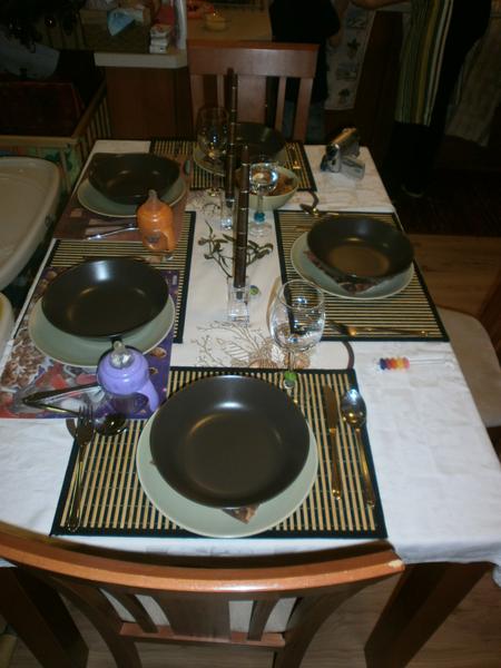 tak vám taky ukážu náš prostřený stůl,když se tu všechny chlubíte 😀 😀 😀 Jídlo tam ale ještě není 😀 To jsem měla položený vedle sebe na lince.