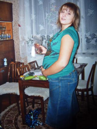 Tady jsem při prvním těhu v 5. měsíci. Jsem pomalu mohla jít rodit 😀