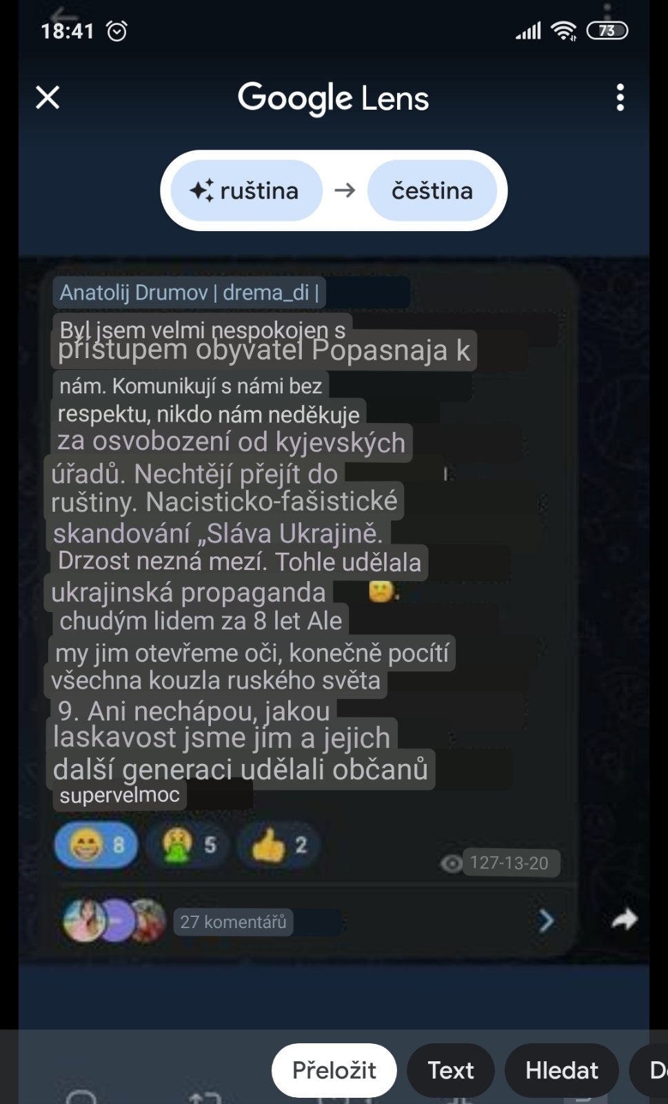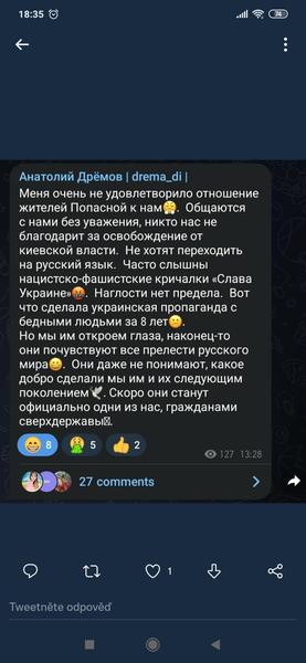 @78marcela ja snad radsi ani nechci vedet 🙄. Rusky svet, to je zeme za Zrcadlem, ale chudaci Ukrajinci jsou Alenka.